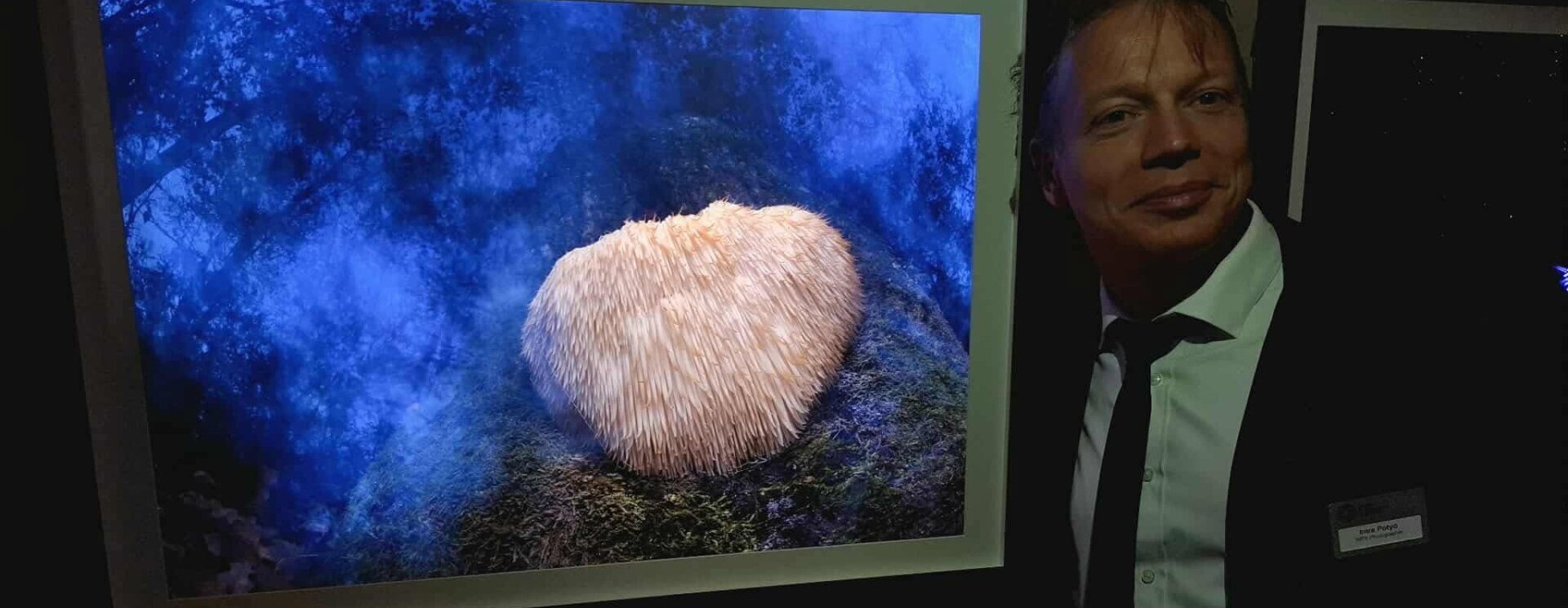 Potyó Imre immár hetedik alkalommal kapott meghívást a londoni díjátadóra, ezúttal a Növények és gombák (Plants and Funghi) kategóriában. A természetfotós egy ritka, védett süngombát örökített meg a börzsönyi erdőben, a kékóra sejtelmes fényében.