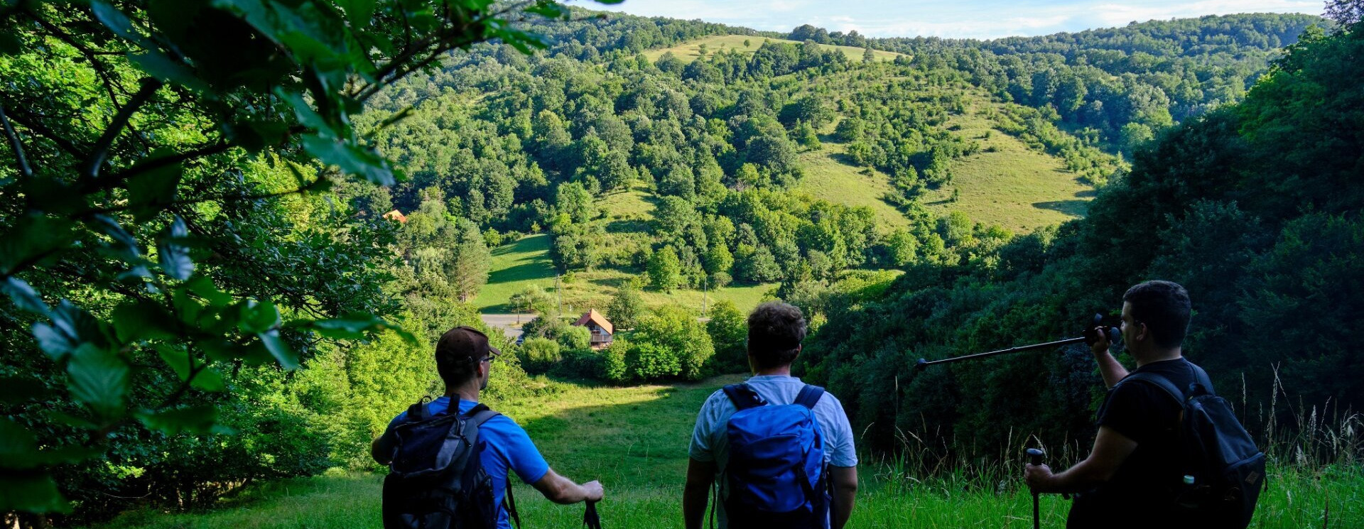 a hosszú, kissé egyhangú erdei „ringatás" végére tartogat még egy meglepetést: a Miske-tető rétjén feltárul a környező táj.