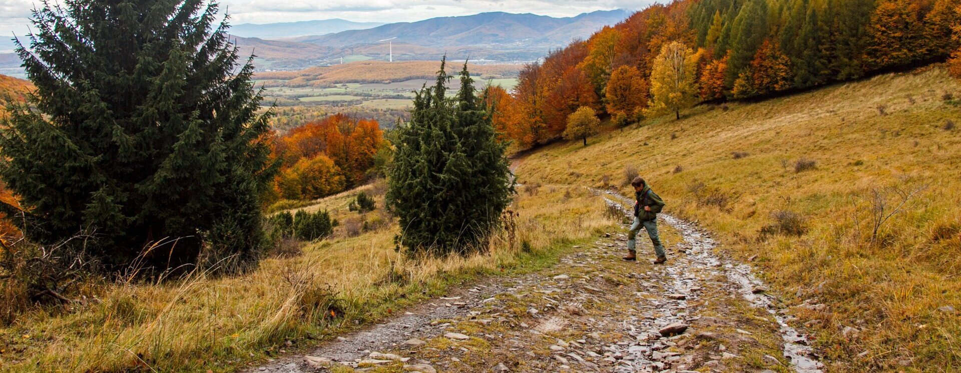 Igazából nem bánjuk a kilátás hiányát, mert az erdő talán még varázslatosabb és még sejtelmesebb a ködben. A Rúbaný vrch (1097 m) elágazásáig tartó gerincvándorlás így azért marad emlékezetes, mert másra nem is tudunk figyelni, minthogy körülöttünk egyszer csak „megnő” az erdő, s a bükkös felveszi a hazánkban is megszokott méretét és látványát.