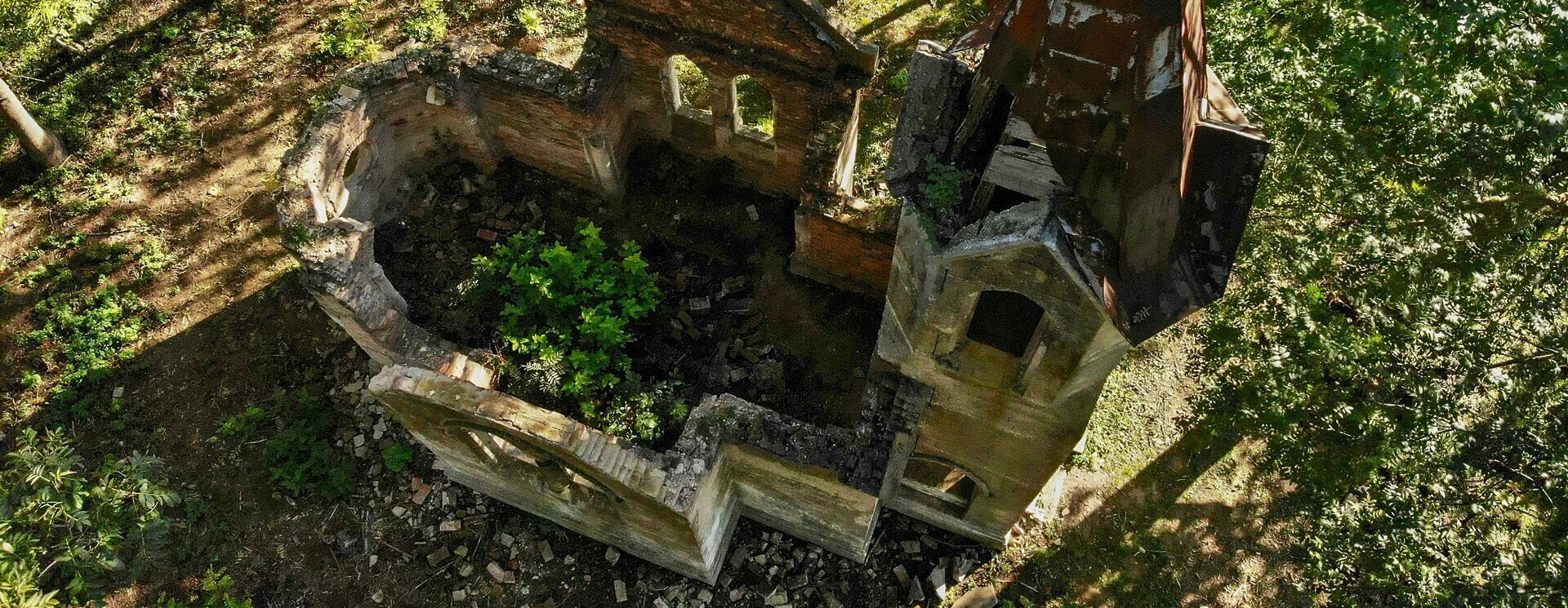 A fák levelei között áttörő napsugarak elragadó fénybe vonták a kápolna romjait