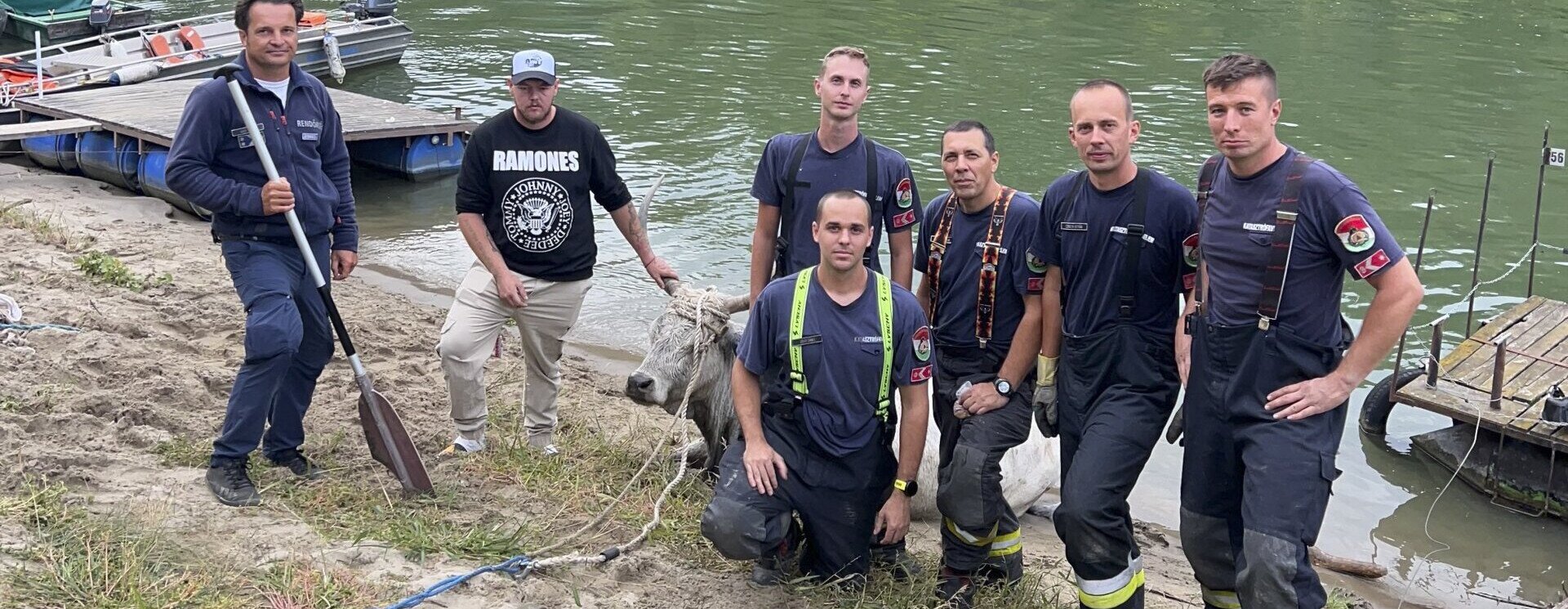 Szeptember utolsó szombatján szembesültek a tűzoltók a szokványosnak korántsem mondható feladattal. A szürkemarha a folyópart olyan részén ragadt be az iszapba, amerre nem lehetett kiszabadítani, ezért a tűzoltóparancsnok úgy döntött, a túlsó part felé húzzák ki az állatot – adta hírül a BM Országos Katasztrófavédelmi Főigazgatóság a Facebook-oldalán, ahol képeket is láthattok. A mentésről egy videó is született: