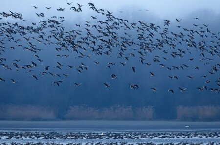 Megérkezett az első nagy vadlúdcsapat a tatai Öreg-tóra